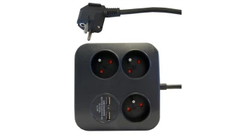 Przedłużacz Power Square 3gniazda+2USB (2,4A-12W) 1,4m 3x1,0mm OWY, grafit / 34104