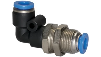 Złączka wtykowa grodziowa kątowa do węża fi 4, gwint nakrętki M12x1,tworzywo sztuczne/mosiądz niklowany, 152.004