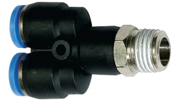 Trójnik pneumatyczny wtykowy typu Y, R 1/4 GZ do węża fi 8 mm, tworzywo sztuczne