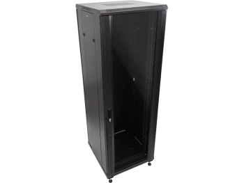 SZAFA SERWEROWA 42U 800X1000, DRZWI PRZEDNIE SZKLANE, DRZWI TYLNE STALOWE PERFOROWANE, ZAMEK, 4 BELK