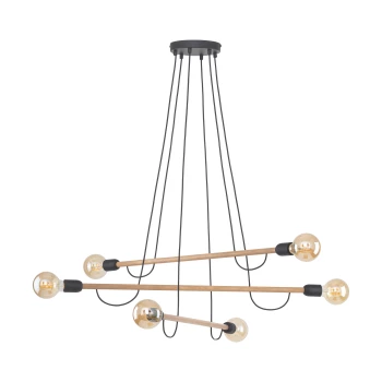 HELIX CZARNY SOSNA OPRAWA WISZĄCA 6 E27/ 15W DREWNO STAL LAKIEROWANA PRZEWÓD/ TWORZYWO