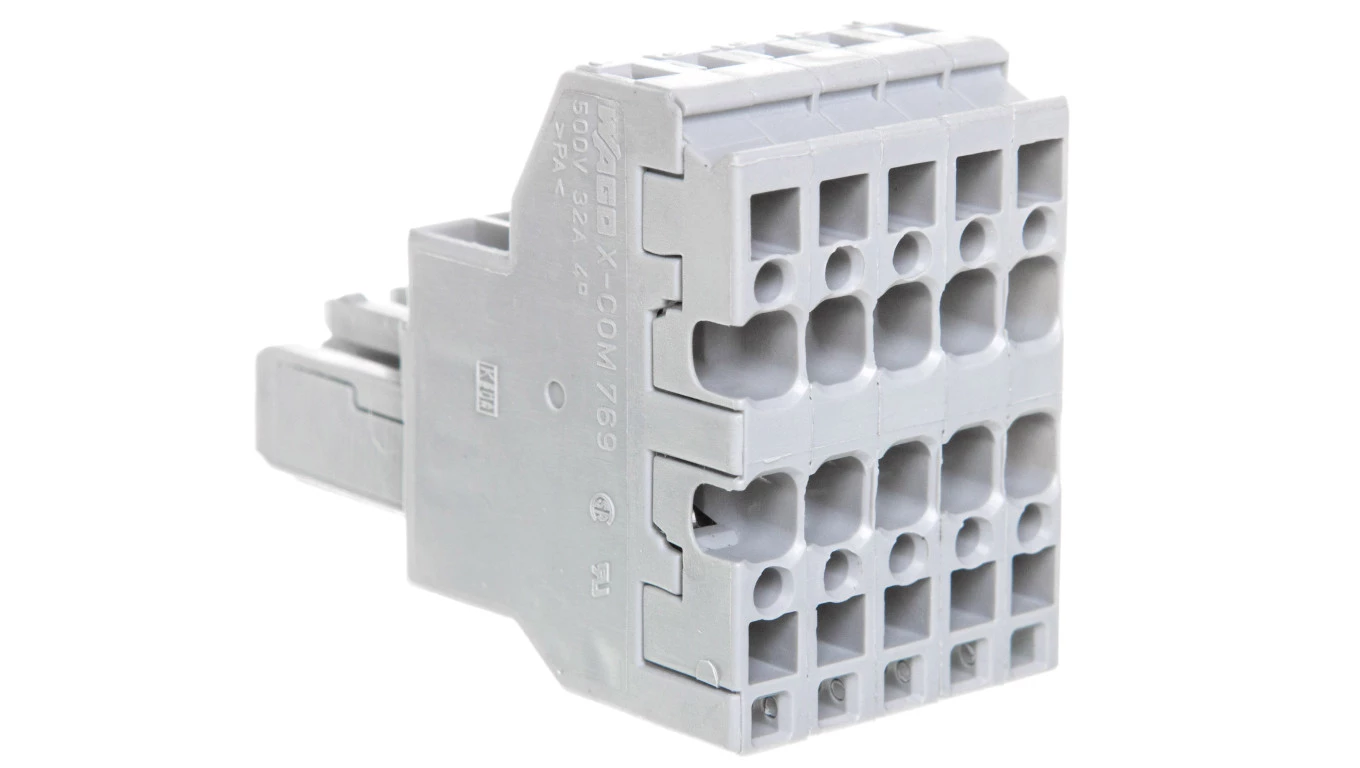 gniazdo 2-przewodowe; CAGE CLAMP®; 4 mm²; raster 5 mm; 5-bieg.; wypust kodujący; 4,00 mm²; szary