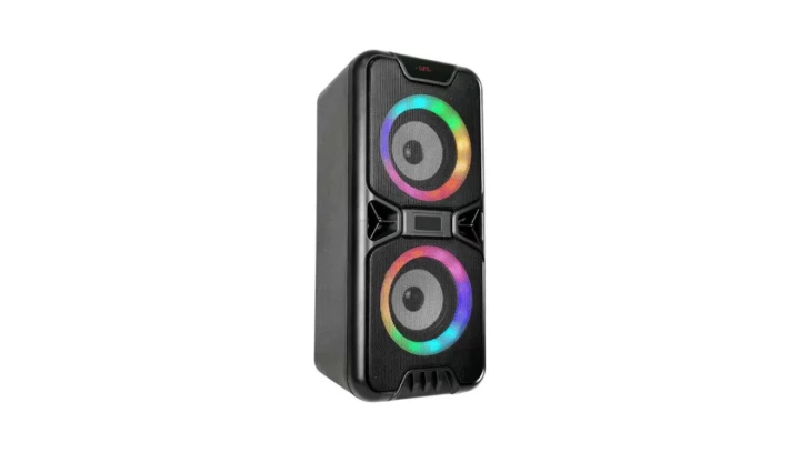 2X10W PRZENOŚNY GŁOŚNIK / GNIAZDO USB / SLOT NA KARTĘ MICRO SD / GNIAZDO AUX / PODŚWIETLENIE LED