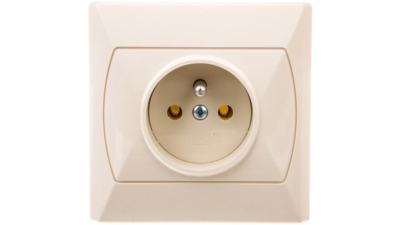 Gniazdo pojedyncze z uziemieniem AKCENT BEŻ o numerze katalogowym GP-1AZ/01 w kategorii Gniazda podtynkowe, Gniazda instalacyjne. Produkt wyprodukowany przez markę OSPEL, seria AKCENT.