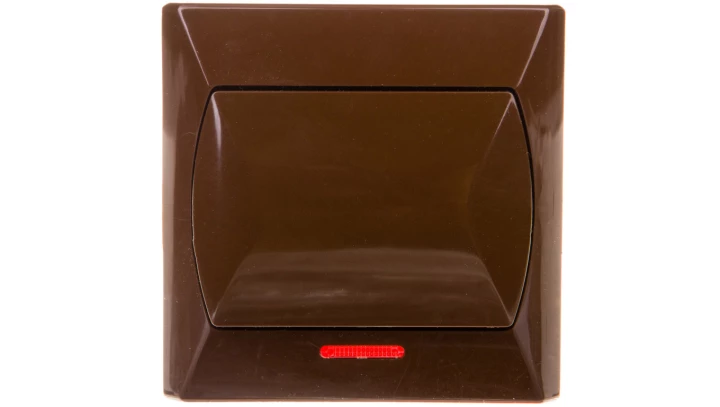 Łącznik jednobiegunowy z podświetleniem pomarańczowym AKCENT BRĄZ o numerze katalogowym ŁP-1AS/24 w kategorii Łączniki podtynkowe jednobiegunowe, Łączniki jednobiegunowe. Produkt wyprodukowany przez markę OSPEL, seria AKCENT.