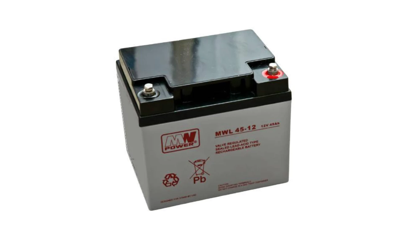 MW Power Akumulator AGM AGM 12V/45Ah 10-12 lat o numerze katalogowym MWL 45-12 w kategorii Akumulatory, Zasilanie systemów KD. Produkt wyprodukowany przez markę MW POWER, seria MWL.
