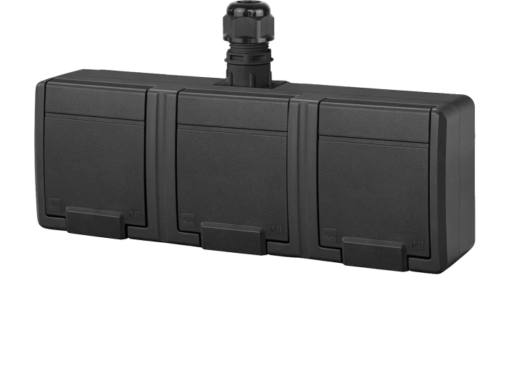AQUANT 2K gniazdo natynkowe potrójne z uziemieniem 3x2P+Z IP65 antracytowy 5043-67