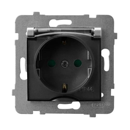 Simon 54 Gniazdo bryzgoszczelne z/u IP44 z klapką transparentną antracyt DGZ1BZ.01/48A