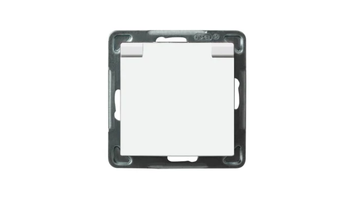SONATA MODUŁ BIAŁY GNIAZDO 1X Z/U Z KLAPKĄ DYMNĄ IP44 ZACISKI ŚRUBOWE 16A 250V