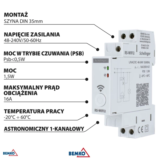 ASTRONOMICZNY PROGRAMATOR CZASOWY WIFI JEDNOKANAŁOWY 48-240V AC/DC