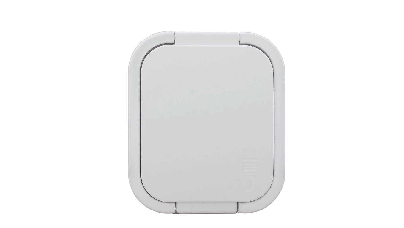 Simon Aquarius Gniazdo hermetyczne pojedyncze z/u IP54 z przesłoną torów i klapką pełną białe AQGZ1z/11