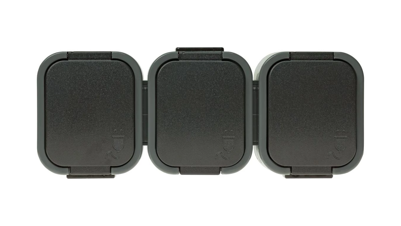 B2 NT-316 B2 SZARY/CZARNY GNIAZDO POTRÓJNE 3X2P+Z BRYZGOODPORNE Z KLAPKĄ W KOLORZE CZARNYM IP54