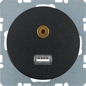 Berker R.1/R.3 Gniazdo USB 3,5mm audio czarny połysk 3315392045