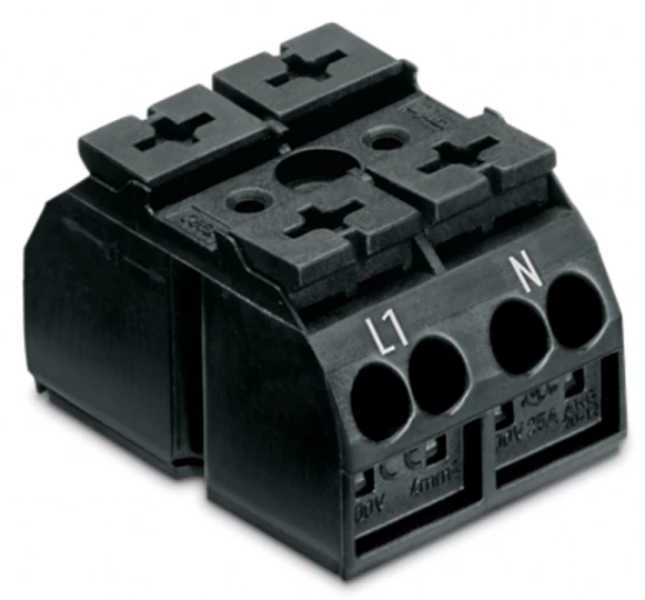 Blok zasilający 4-biegunowy czarny nadruk PE-N-L1-L2 862-1604/999-950 /200szt./