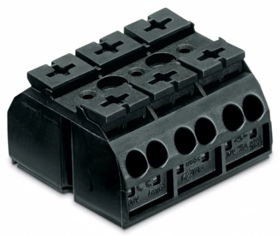 blok zasilający 4-przewodowy; bez styku PE; 3-bieg.; 4 mm²; czarny