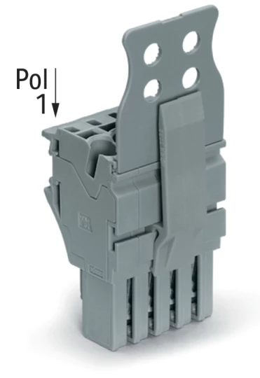 Gniazdo 1-przewodowe X-COMS 3-biegunowe szare ze stykiem PE 2022-103/000-036 /100szt./