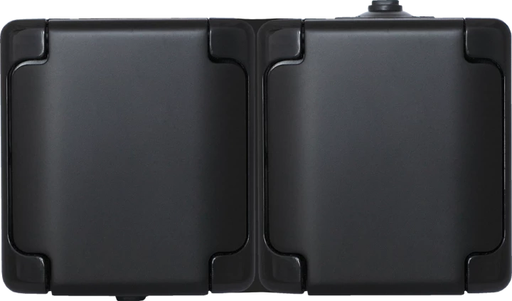 TEKNO CZARNY/SZARY GNIAZDO NT 2X Z/U POZIOME Z PRZESŁONAMI Z KLAPKĄ IP54 ZACISKI ŚRUBOWE 05-1254-143