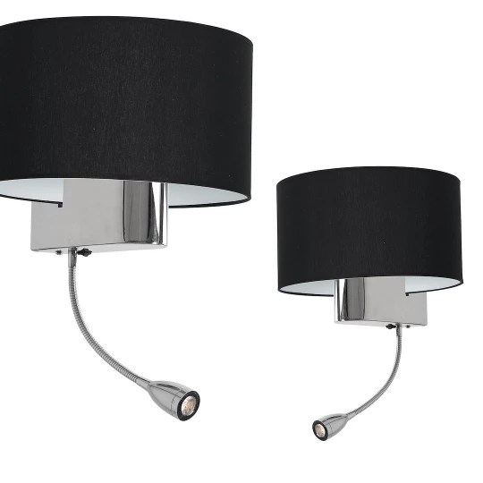 CASINO CZARNY CHROM OPRAWA ŚCIENNA KINKIET 1XE27+ 1W LED 4000K 90LM IP20 METAL TKANINA