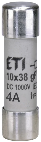 Wkładka cylindryczna PV topikowa CH10x38 gPV 4A/1000V DC 002625069 ETI o numerze katalogowym 002625069 w kategorii Wkładki bezpiecznikowe cylindryczne 10x38, Wkładki bezpiecznikowe cylindryczne. Produkt wyprodukowany przez markę ETI.