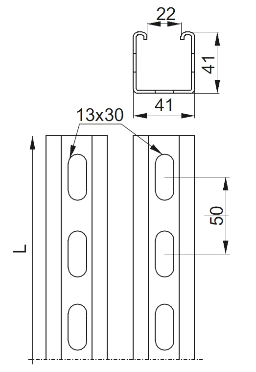 Ceownik montażowy CMP41H41/1MC o numerze katalogowym 856210 w kategorii Konstrukcje PV, Konstrukcje montażowe. Produkt wyprodukowany przez markę BAKS, seria CMP.