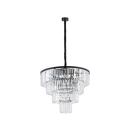 CRISTAL L TRANSPARENTNY/ CZARNY OPRAWA WISZĄCA 12X E14/ 40W IP20 KRYSZTAŁ/ STAL LAKIEROWANA