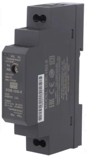 Przetwornica 15W 9~36V-5V 3A o numerze katalogowym DDR-15G-5 w kategorii Przetwornice AC/DC i DC/DC, Zasilacze. Produkt wyprodukowany przez markę MEAN WELL, seria DDR.