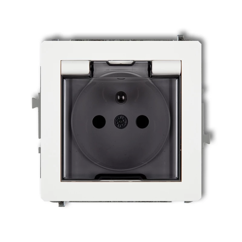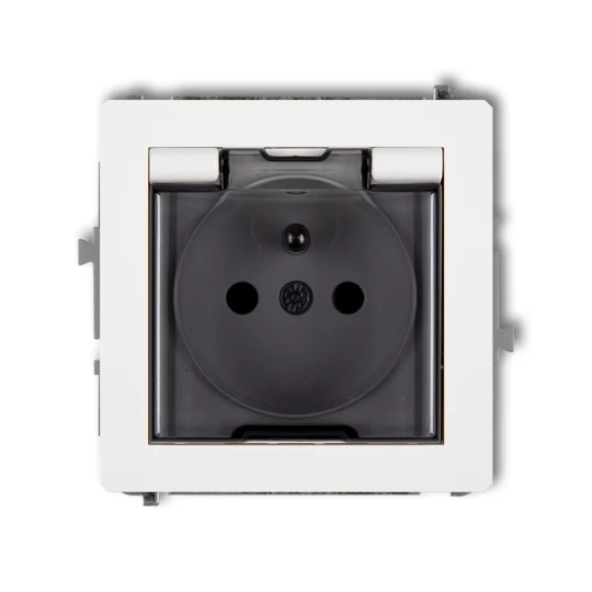SIMON BASIC MODUŁ BIAŁY GNIAZDO 1X Z/U Z KLAPKĄ DYMNĄ IP44 ZACISKI ŚRUBOWE 16A 250V