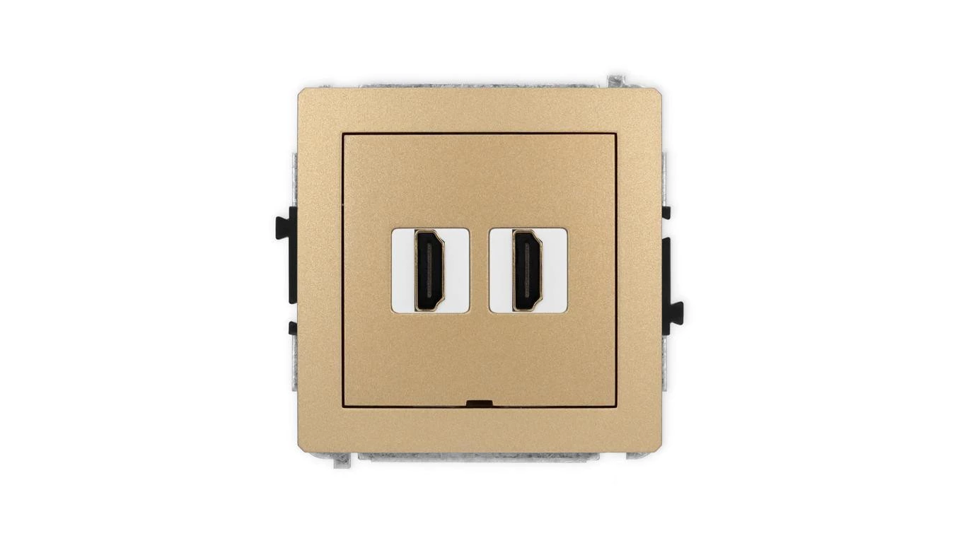 DECO Mechanizm gniazda podwójnego HDMI 2.1, 8K, bez pola opisowego złoty metalik 8DHDMIBO-6