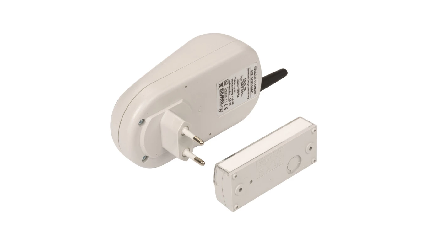 Dzwonek bezprzewodowy sieciowy z przyciskiem hermetycznym, zasięg 100m, Bulik DRS-982K, biały o numerze katalogowym SUN10000008 w kategorii Dzwonki bezprzewodowe, Dzwonki i gongi. Produkt wyprodukowany przez markę ZAMEL, seria SUNDI.