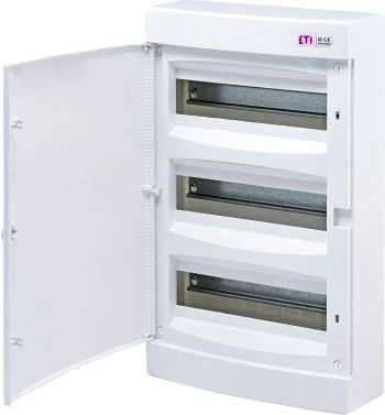 Obudowa natynkowa 3 rzędy po 18 mod. drzwi białe ECT 3X18PO-S o numerze katalogowym 001101043 w kategorii Tworzywowe natynkowe, Rozdzielnice i obudowy. Produkt wyprodukowany przez markę ETI.
