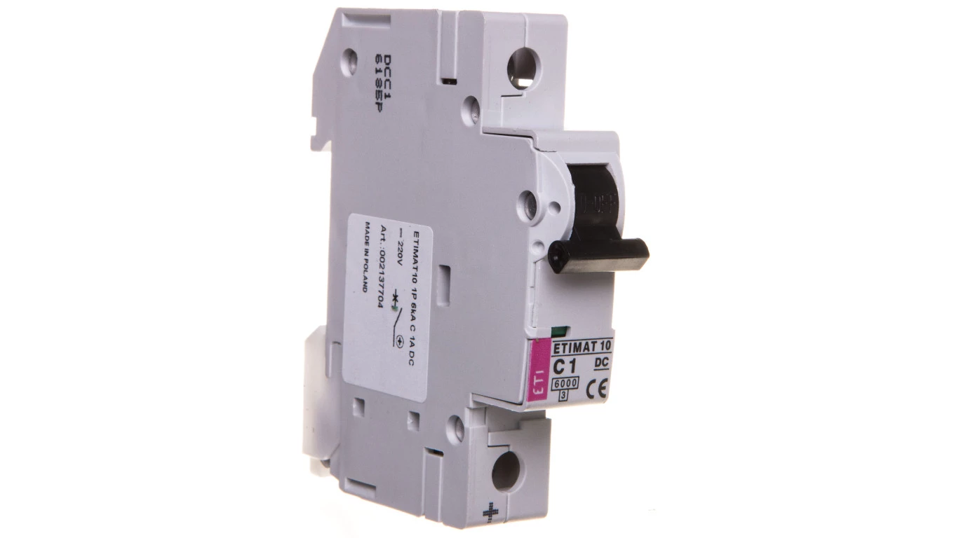 Wyłącznik nadprądowy DC ETIMAT 10-DC 1P C1 6KA o numerze katalogowym 002137704 w kategorii Wyłączniki nadprądowe 10kA, Wyłączniki nadprądowe. Produkt wyprodukowany przez markę ETI.