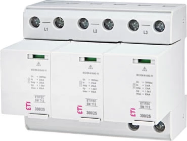 Ogranicznik przepięć T1, T2 (B, C) - bez prądu upływu ETITEC SM T12 300/25 3+0 RC o numerze katalogowym 002440561 w kategorii Ograniczniki przepięć typ 1+2, Ograniczniki przepięć. Produkt wyprodukowany przez markę ETI.