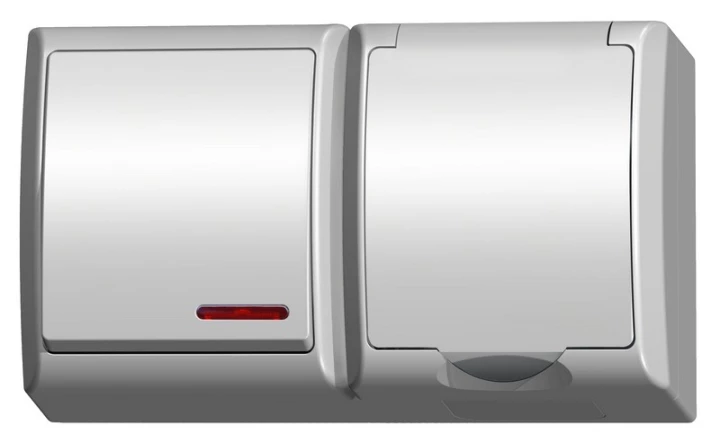 FALA BIAŁY GNIAZDO NT 1X Z/U Z KLAPKĄ DYMNĄ+ŁĄCZNIK NT 1-BIEGUNOWY PODŚWIET ZACISKI ŚRUBOWE 16A IP44