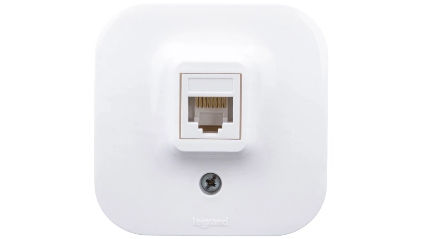 Gniazdo forix białe 1xRJ45 kat.5e UTP o numerze katalogowym 782424 w kategorii Gniazda teleinformacyjne, multimedialne, Łączniki i gniazda instalacyjne. Produkt wyprodukowany przez markę LEGRAND, seria LCSRJ.