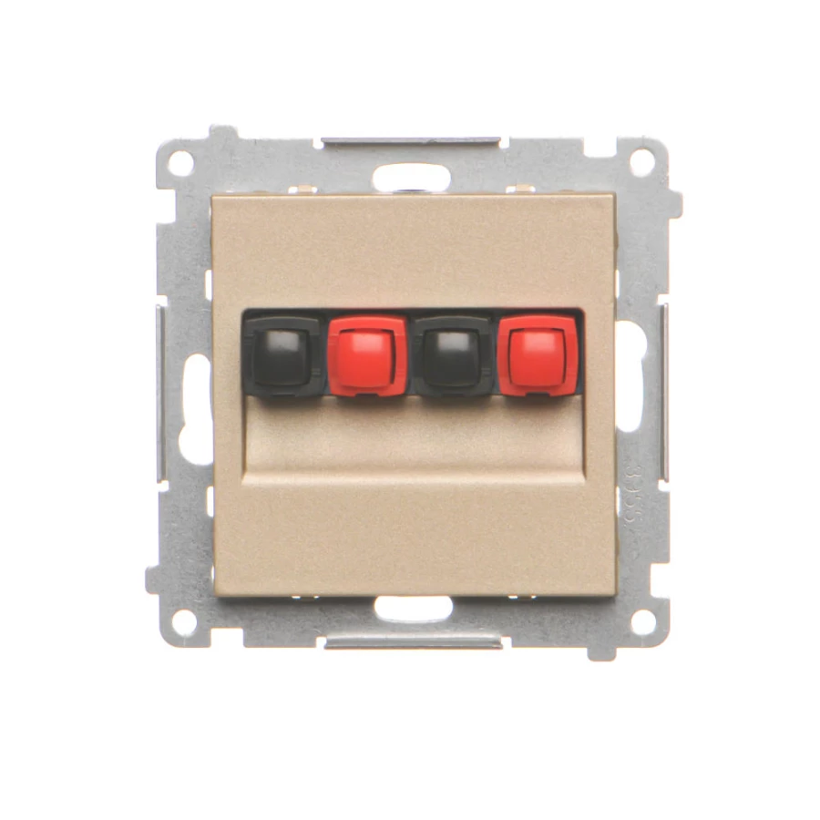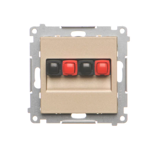Gniazdo głośnikowe 2-krotne (moduł). Przekrój przewodów dla wejścia i wyjścia 2,5 mm2: Szampański mat, SIMON55 o numerze katalogowym   TGL2.01/144 w kategorii Łączniki i gniazda instalacyjne>Gniazda głośnikowe. Produkt wyprodukowany przez markę KONTAKT-SIMON, seria SIMON 55.