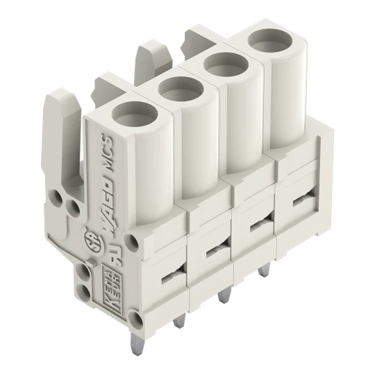 gniazdo THT; konstrukcja prosta; raster 5 mm; 4-bieg.; 100% ochrona przed błędnym połączeniem; pin lutowniczy 0,6 x 1,0 mm; jasnoszary