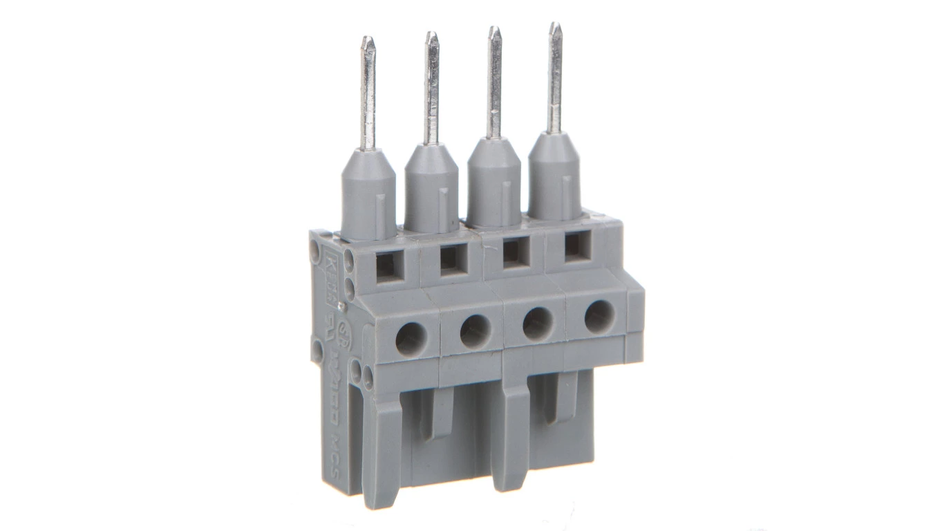 gniazdo do złączek listwowych; piny 0,6 x 1 mm; konstrukcja prosta; raster 5 mm; 4-bieg.; szary