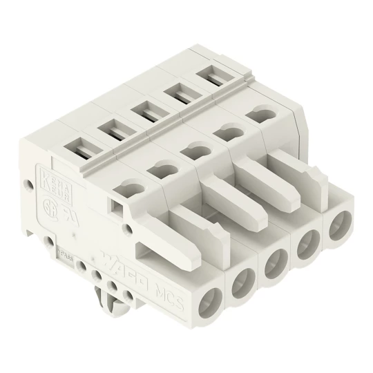 gniazdo 1-przewodowe; CAGE CLAMP®; 2,5 mm²; raster 5 mm; 5-bieg.; 100% ochrona przed błędnym połączeniem; stopki zatrzaskowe; 2,50 mm²; jasnoszary