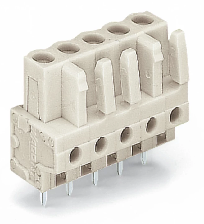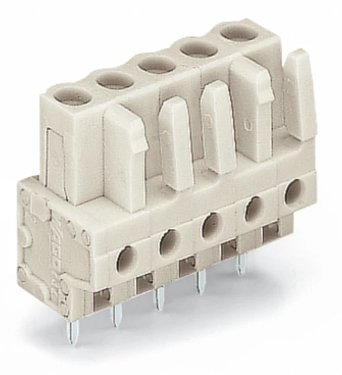 gniazdo THT; konstrukcja prosta; raster 5 mm; 5-bieg.; 100% ochrona przed błędnym połączeniem; pin lutowniczy 0,6 x 1,0 mm; jasnoszary