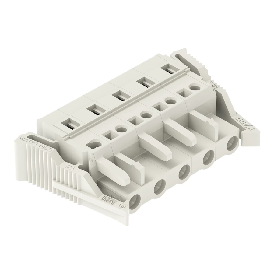 gniazdo 1-przewodowe; CAGE CLAMP®; 2,5 mm²; raster 7,5 mm; 5-bieg.; 100% ochrona przed błędnym połączeniem; boczne zaczepy ryglujące; 2,50 mm²; jasnoszary