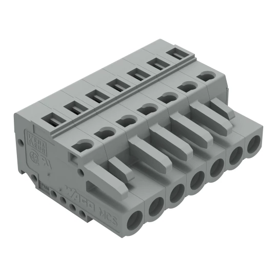 gniazdo 1-przewodowe; CAGE CLAMP®; 2,5 mm²; raster 5 mm; 7-bieg.; ze zintegrowaną ścianką końcową; szary