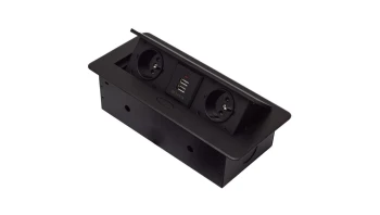 Gniazdo meblowe wpuszczane w blat potrójne 3x 230V 2P+Z z przewodem 1,5m metalowe srebrne ADELID