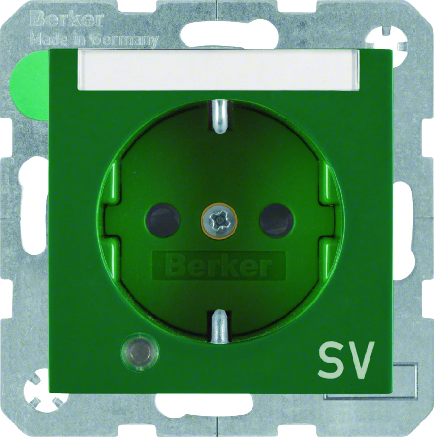 Gniazdo SCHUKO z lamką kontrolną polem opisowym i nadrukiem zielony połysk S.1/B.3/B.7 Glas 41108913