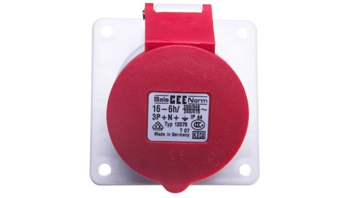 Gniazdo tablicowe skośne 16A 5P 400V /75x85/ czerwone IP44 415-6F87