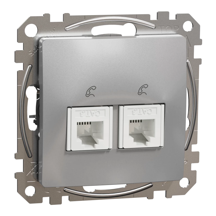 Gniazdo telefoniczne 2xRJ11, srebrne aluminium SEDNA DESIGN o numerze katalogowym SDD113492 w kategorii Gniazda teleinformacyjne, multimedialne, Łączniki i gniazda instalacyjne. Produkt wyprodukowany przez markę SCHNEIDER ELECTRIC, seria SEDNA DESIGN.
