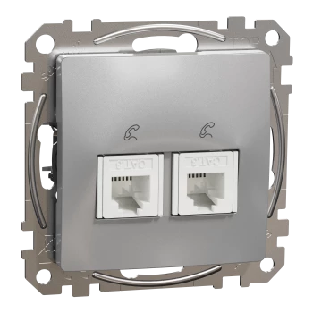 Gniazdo telefoniczne podwójne RJ11, srebrne aluminium, Sedna Design i Elements SDD113492
