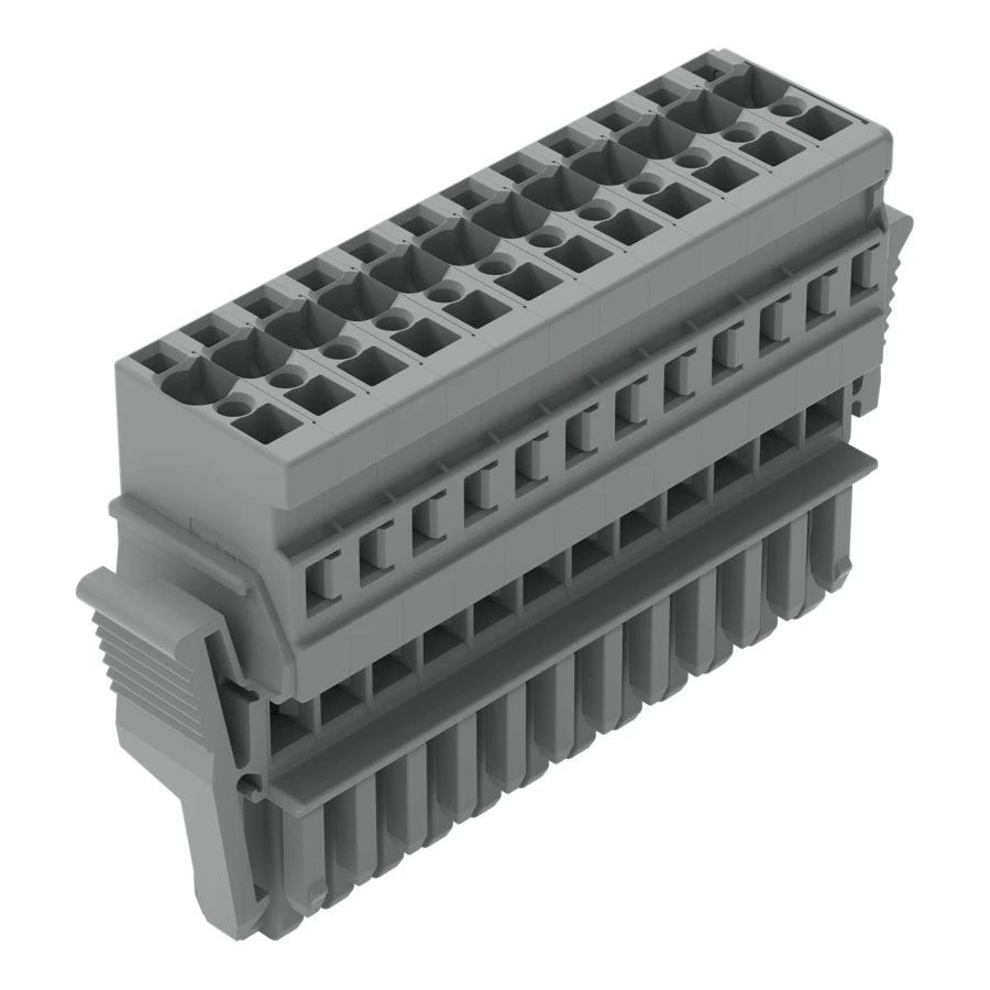 gniazdo 1-przewodowe; CAGE CLAMP®; 4 mm²; raster 5 mm; 12-bieg.; wypust kodujący; boczne zaczepy ryglujące; 4,00 mm²; szary