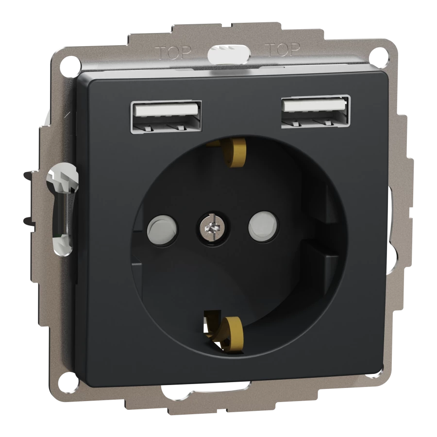 Gniazdo schuko z USB A+A 2,4A, czarny antracyt SEDNA DESIGN o numerze katalogowym SDD114052 w kategorii Gniazda podtynkowe, Gniazda instalacyjne. Produkt wyprodukowany przez markę SCHNEIDER ELECTRIC, seria SEDNA DESIGN.