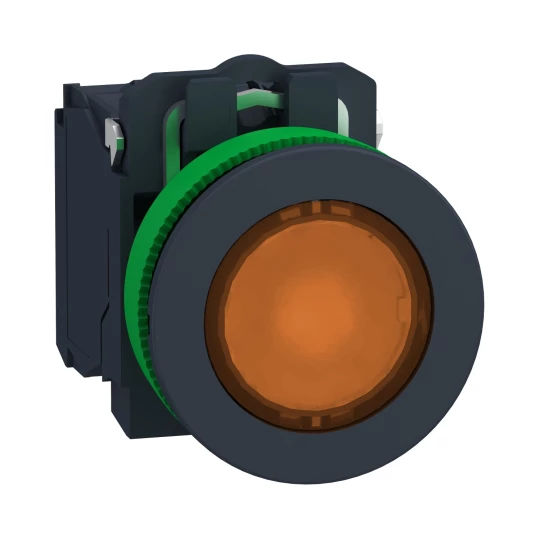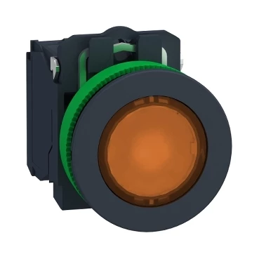 Harmony XB5 Przycisk podświetlany plastik. pomarańczowy fi30 zintegrowana dioda LED 230…240 V AC 1Z + 1R XB5FW35M5