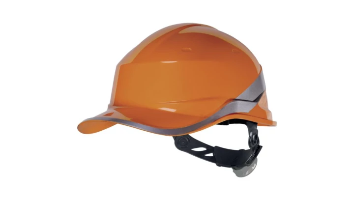 Hełm budowlany Diamond V ABS pomarańczowy izolacja elektryczna o numerze katalogowym DIAM5ORFL w kategorii Hełmy budowlane, Ochrona głowy. Produkt wyprodukowany przez markę DELTA PLUS, seria BASEBALL DIAMOND V.